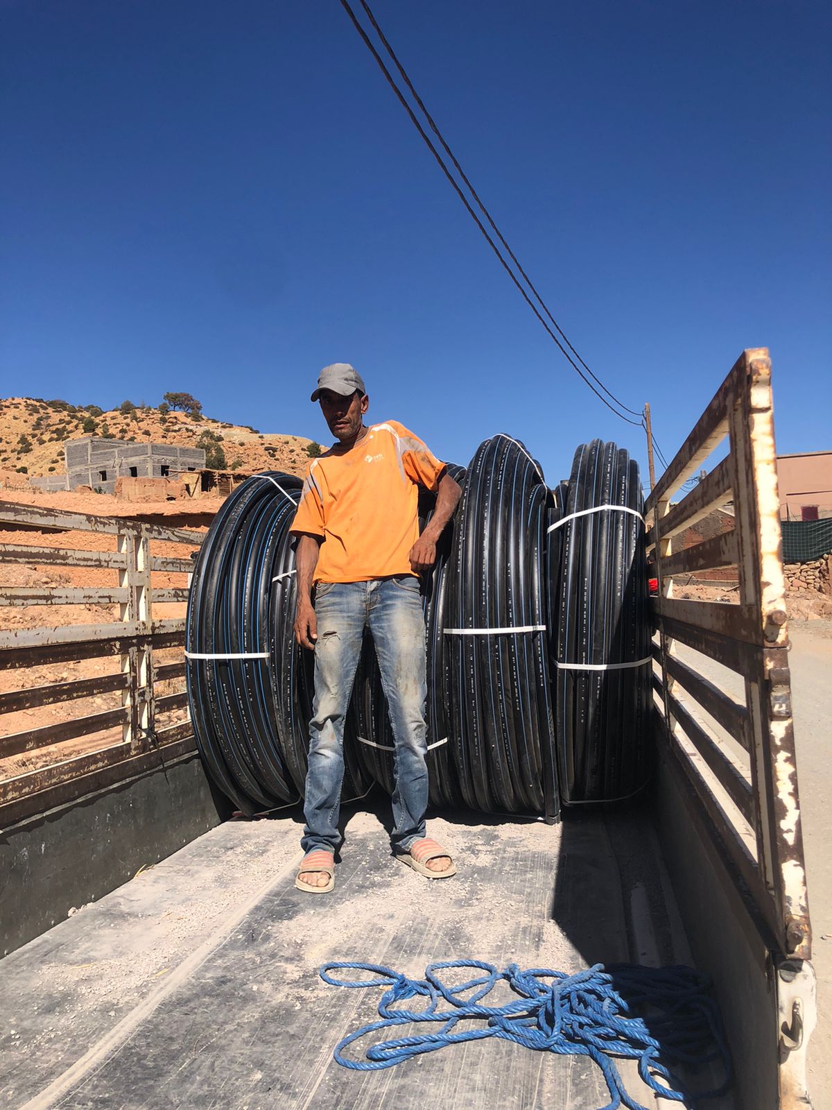 En phase de reconstruction, nous avons financé l’achat de 2’000 tuyaux afin de raccorder l’eau au nouveau village. Une aide précieuse pour les habitants et les enfants qui n’ont plus à marcher 2 kilomètres pour trouver… de l’eau !